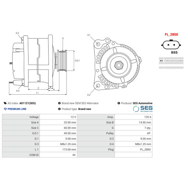 Alternátor AS-PL A01121(SEG)