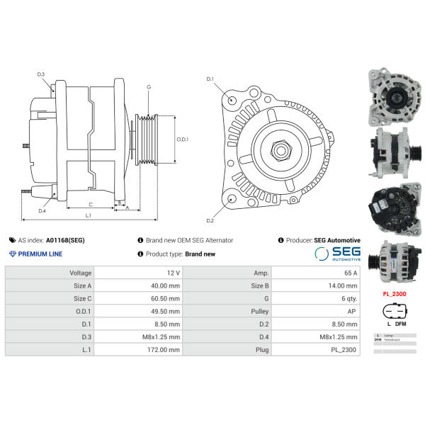 Alternátor AS-PL A01168(SEG)