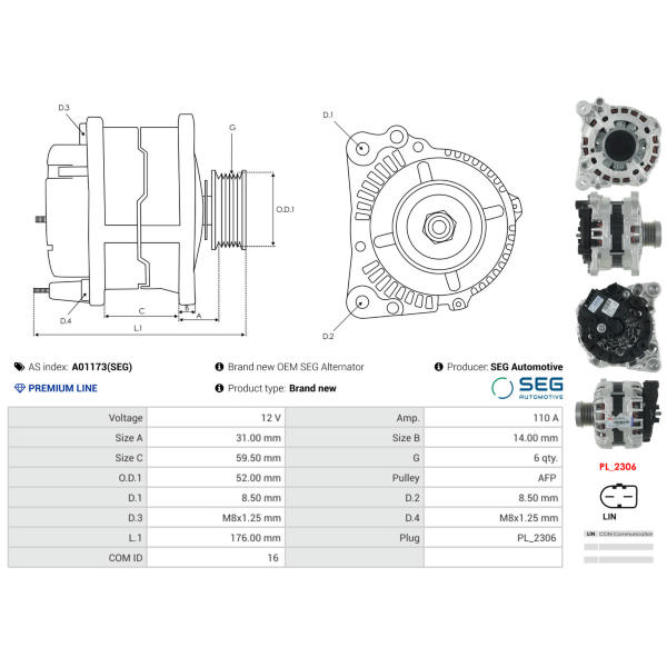 Alternátor AS-PL A01173(SEG)