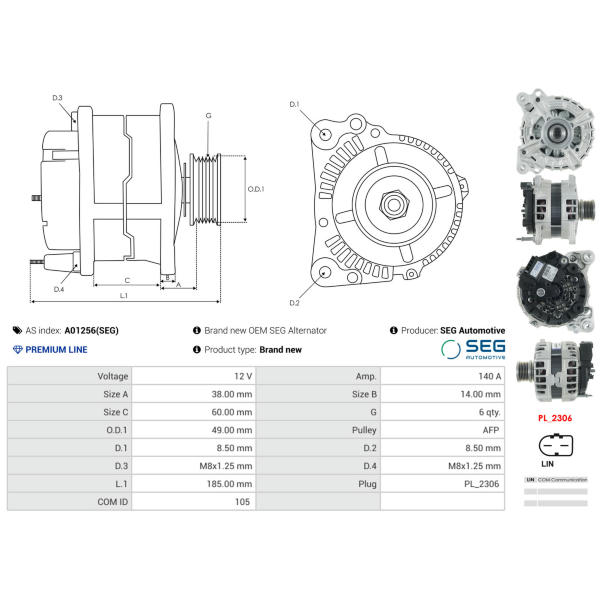 Alternátor AS-PL A01256(SEG)