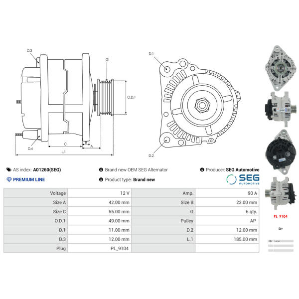 Alternátor AS-PL A01260(SEG)