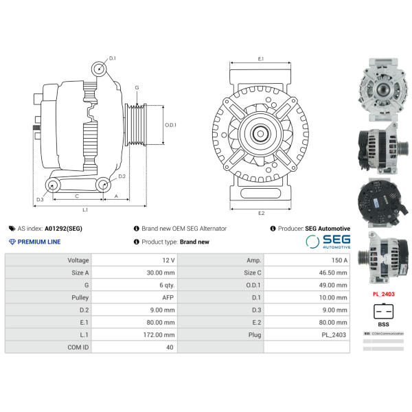 Alternátor AS-PL A01292(SEG)