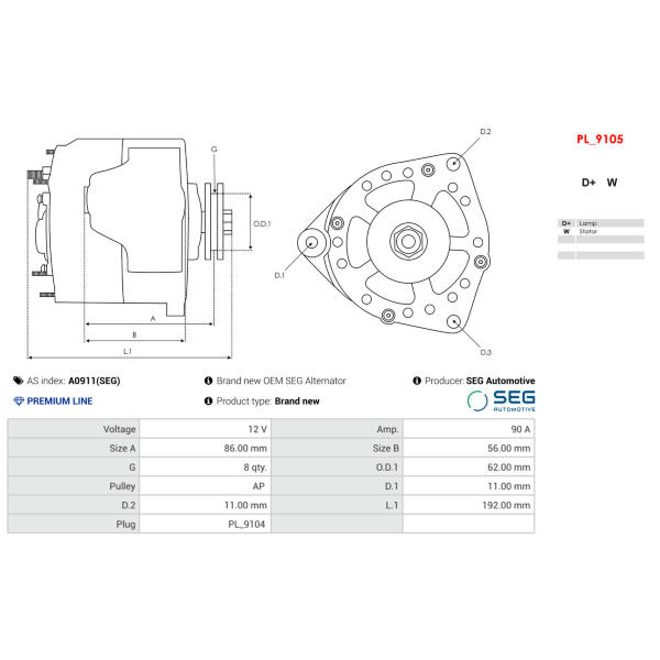 Alternátor AS-PL A0911(SEG)