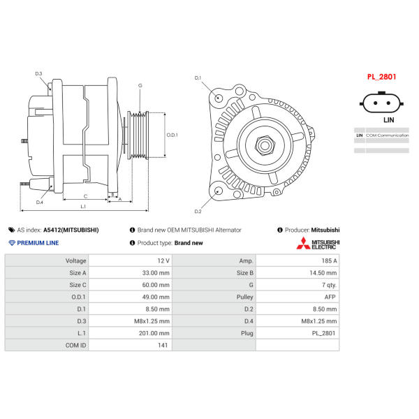 - Katalógový kód:A5412(MITSUBISHI)
