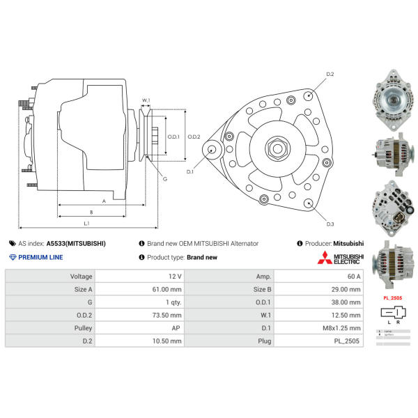 - Katalógový kód:A5533(MITSUBISHI)