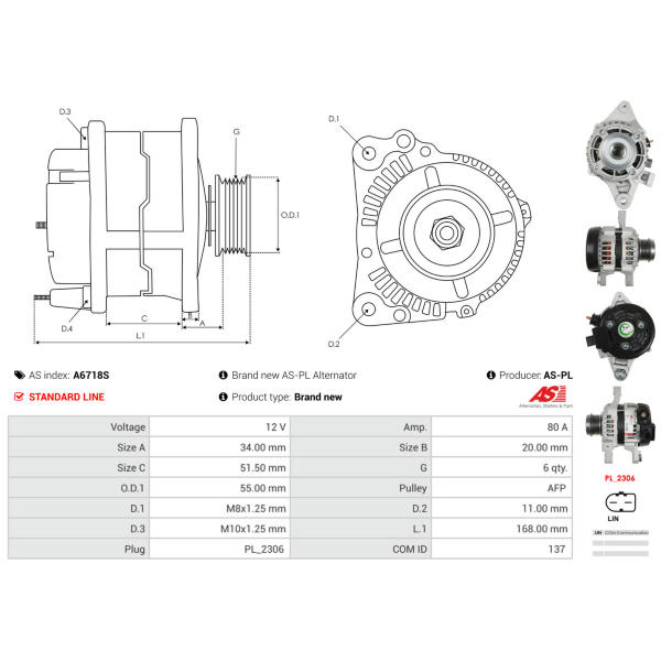 Alternátor AS-PL A6718S