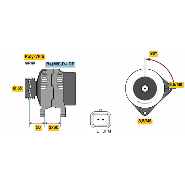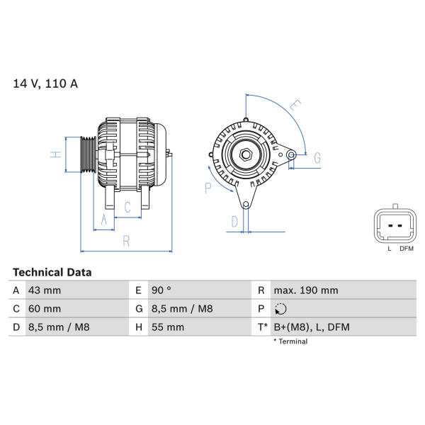 - Svorka:B1+(M8), L, DFM