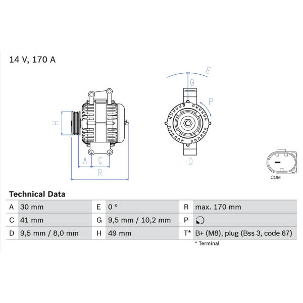 - Svorka:B+(M8),PLUG(BSS 3)