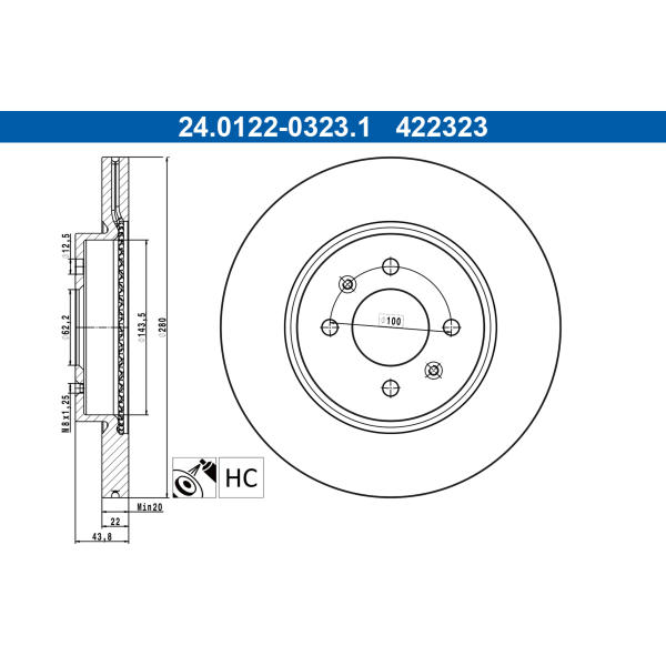 Brzdový kotúč ATE 24.0122-0323.1