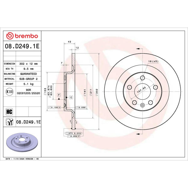 Brzdový kotúč BREMBO 08.D249.1E