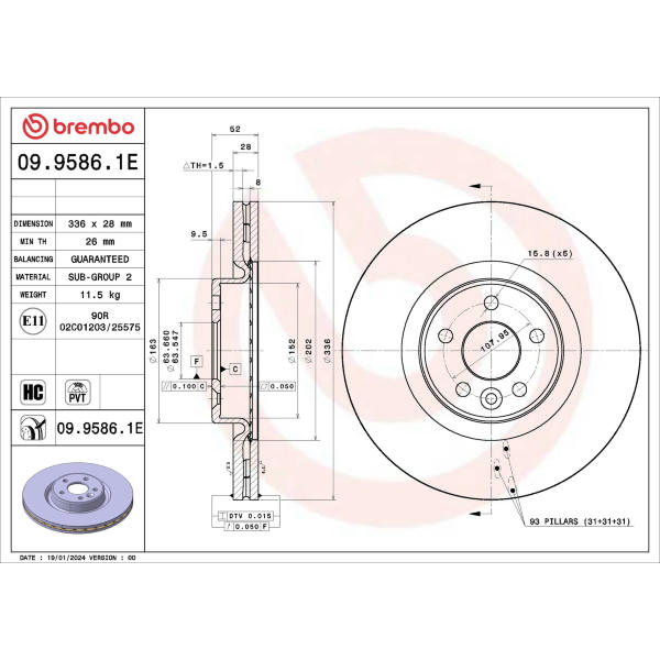 Brzdový kotúč BREMBO 09.9586.1E