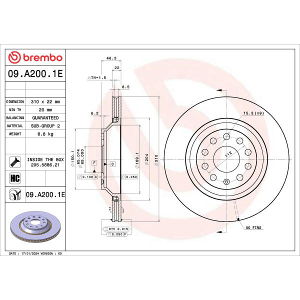 Brzdový kotúč BREMBO 09.A200.1E