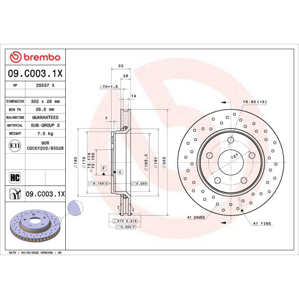 Brzdový kotúč BREMBO 09.C003.1X