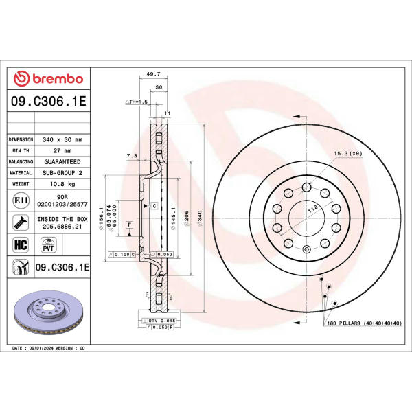 Brzdový kotúč BREMBO 09.C306.1E