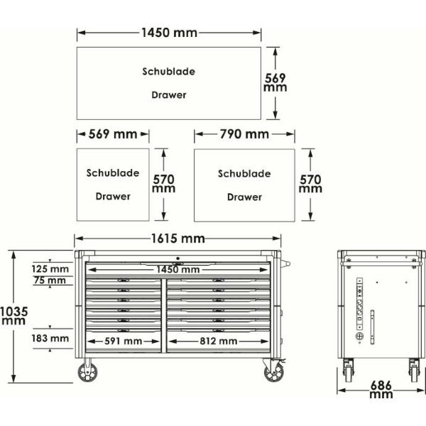 - Vnútorná šírka zásuvky [mm]:569, 790, 1450