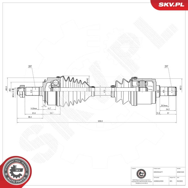 Hnací hriadeľ ESEN SKV 40SKV220