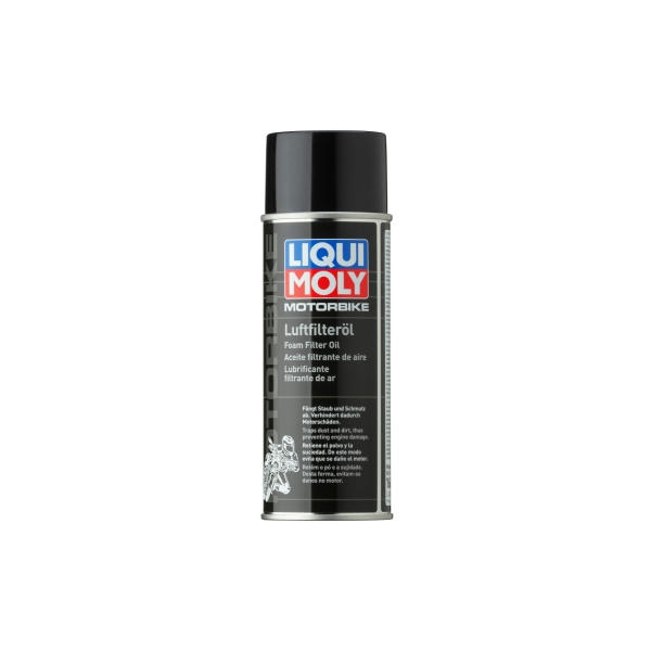 Olej na vzduchové filtre motocyklov v spreji je špeciálne vyvinutý prostriedok na zvlhčenie penových a tkaninových vzduchových filtrov. Čiastočky nečistôt, ktoré sa do motora nasávajú obzvlášť pri extrémnych prevádzkových podmienkach, sa budú spoľahlivo zachytávať na vzduchovom filtre. Tým sa zabráni poškodeniu motora. Aplikovaný olej zaručuje optimálny priechod vzduchu filtrom a tým aj maximálny výkon motora.
