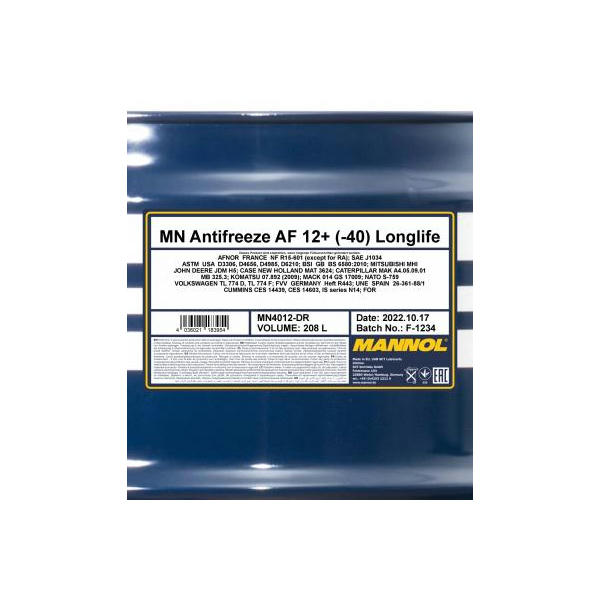 - odporúčanie výrobcu oleja:BMW GS 94000, BRB BR 637, CUMMINS CES 14439, CUMMINS CES 14603, DAF 74002, DEUTZ DQC CB-14, FORD WSS-M97B44-D, JAGUAR CMR 8229, JOHN DEERE JDM H5, LIEBHERR MD1-36-130, MACK 014 GS 17009, MAN 324 SNF, MAZDA MEZ MN 121 D, MB 325.3, MINI GS 94000, MITSUBISHI