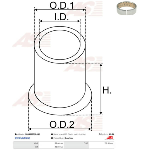 Puzdro, Hriadeľ żtartéra AS-PL SBU9022P(BULK)
