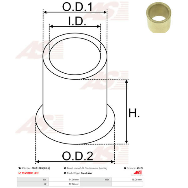 Puzdro, Hriadeľ żtartéra AS-PL SBU9152S(BULK)
