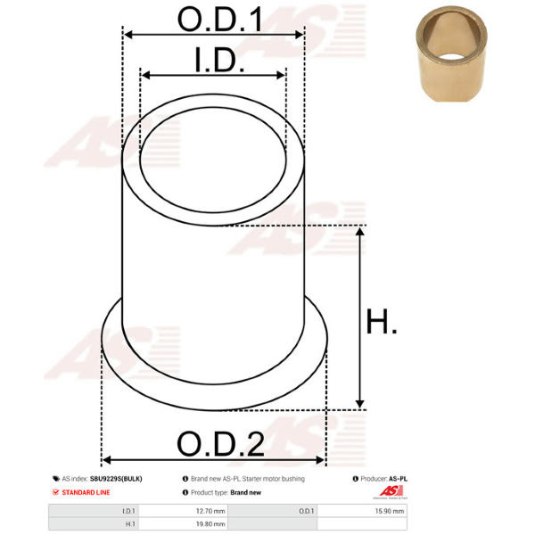 Puzdro, Hriadeľ żtartéra AS-PL SBU9229S(BULK)