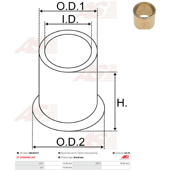 Puzdro, Hriadeľ żtartéra AS-PL SBU9126 Na externom sklade | AS-PL |