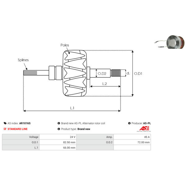 Rotor alternátora AS-PL AR1016S