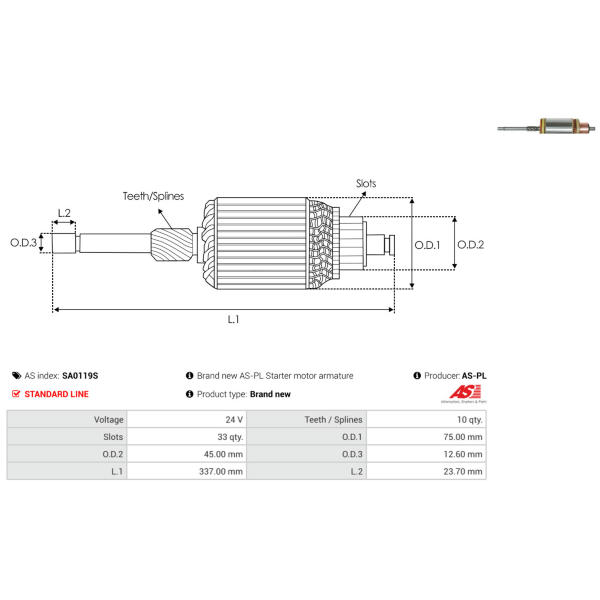 Rotor żtartéra AS-PL SA0119S