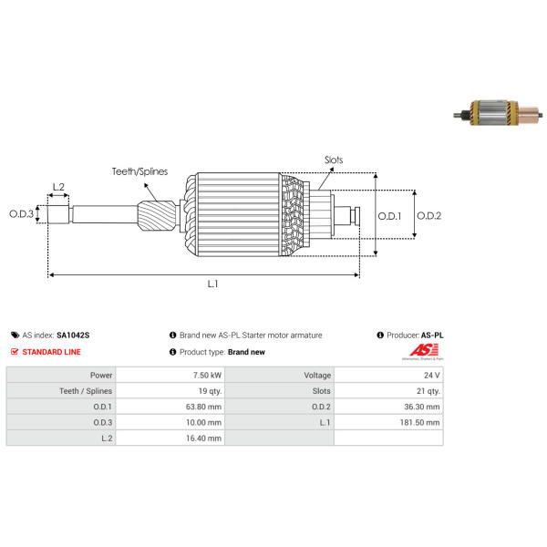 Rotor żtartéra AS-PL SA1042S
