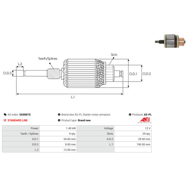 Rotor żtartéra AS-PL SA9067S