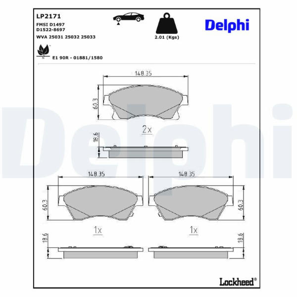 Sada brzdových platničiek kotúčovej brzdy DELPHI LP2171