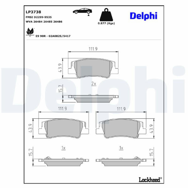 Sada brzdových platničiek kotúčovej brzdy DELPHI LP3738