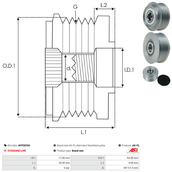 Voľnobeżka alternátora AS-PL AFP5076S